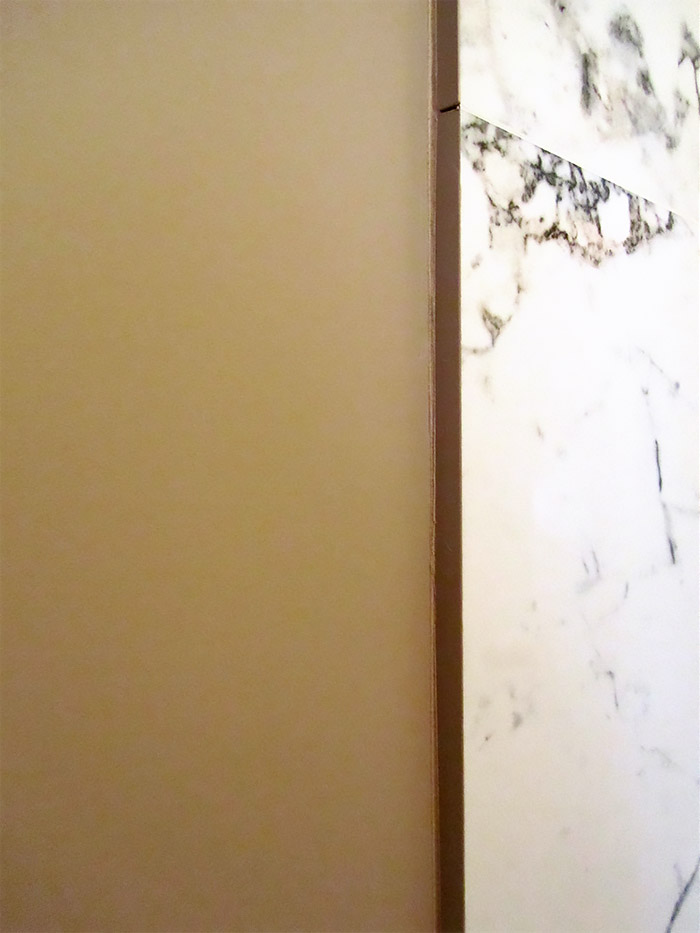Еще одной особенностью этого проекта является то что в зоне душа стены выложены плиткой, а стены вне зоны душа покрашены краской. Такое сочетание встречается нередко и мы предлагаем свое решение, того как надежно и герметично разделить эти две зоны. Это будет использование водостойкого П-профиля для крепления неподвижных стекол к стенам ванной комнаты.